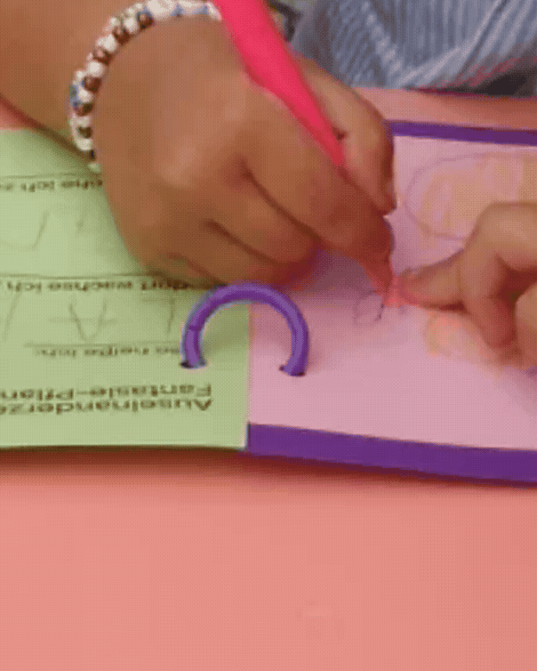 So findet mit den Zeichnungen oder Notizen ein offener und ungezwungener Austausch mit statt. Einen Austausch auf und mit Papier.