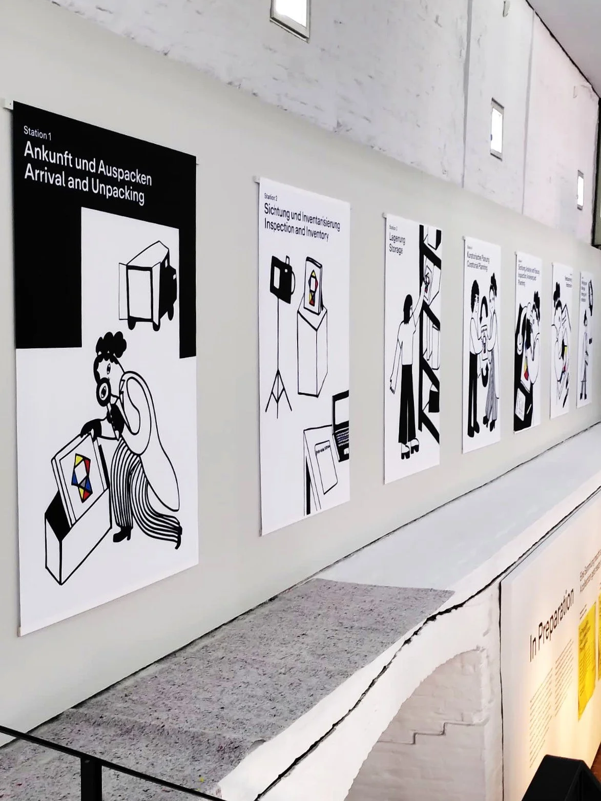 Illustrationen für das Ausstellungsdisplay und für die verschiedenen Stationen, um museale Restaurationsarbeit visuell zu vermitteln.