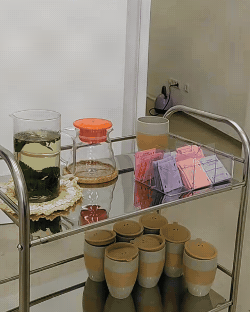 Mittels verschiedener Komponenten (z.B. Tee, bequeme Sitzgelegenheiten) eröffnete das Format inhaltliche als auch inklusive Zugänge zur Betrachtung zeitgenössischer Kunst und adaptierte die Geste des Willkommen-Heißens der Tee-Kultur und lud zum kontemplativen Kunstgenuss ein.