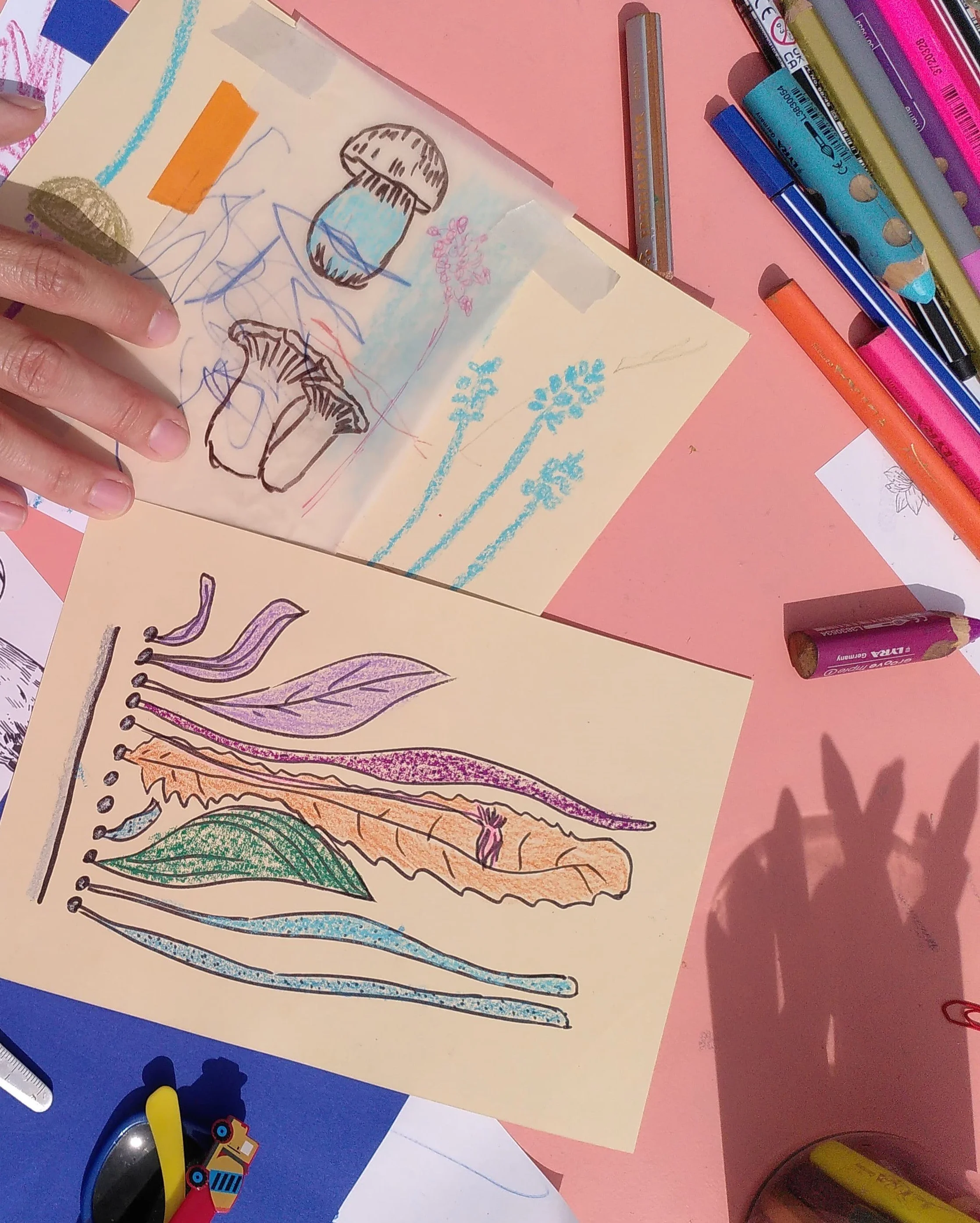 Schnörkelig, pelzig oder gerastert – wie setzt sich die Natur aus Linien und Formen zusammen? Wie können sie in ihre Einzelteile zerlegt werden? Im Workshop können Kräuter, Pilze und andere Pflanzen ganz genau angeschaut, gezeichnet und abgepaust werden. Lassen sich die Formen einmal auseinandergezeichnet zu einer ganz neuen Pflanze zusammensetzen?